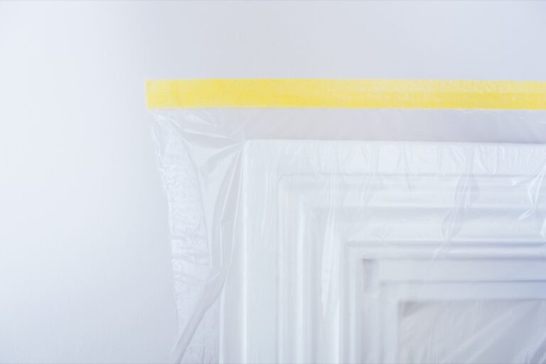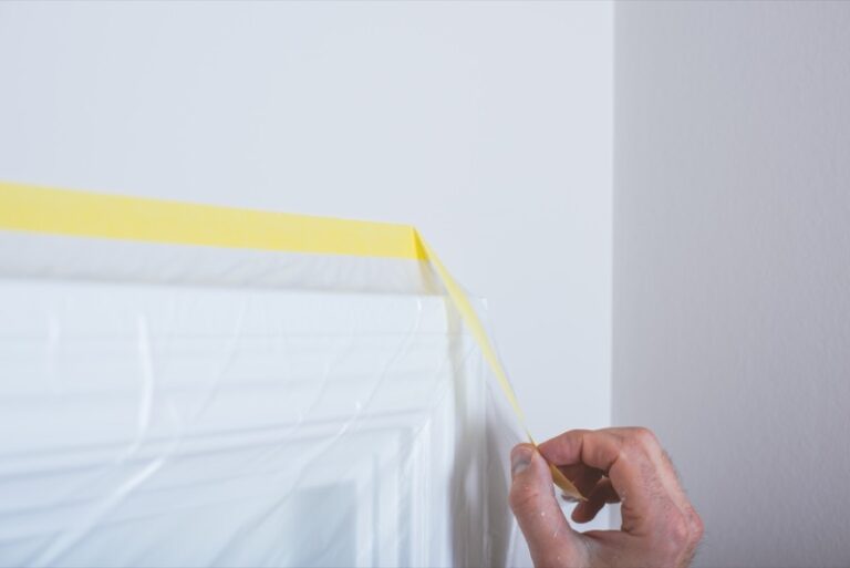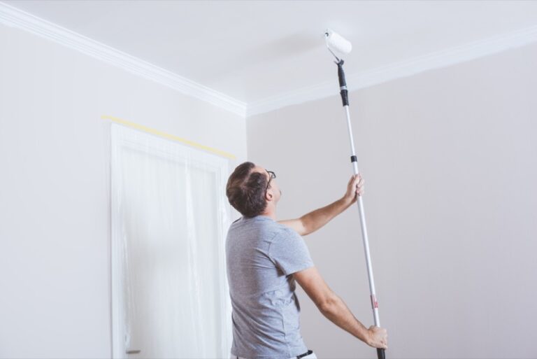При боядисване на тавани може да има пръски, затова покрийте вратите и прозорците с найлон. Покрийте и стените, ако няма да се боядисват.
