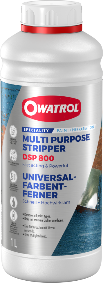 DSP 800 е универсален многофункционален препарат за отстраняване на замърсявания, известен със своето бързо действие и мощна производителност. С нова формула, той не съдържа дихлорометан, което осигурява по-безопасно и по-екологично решение за различни нужди от отстраняване на замърсявания.