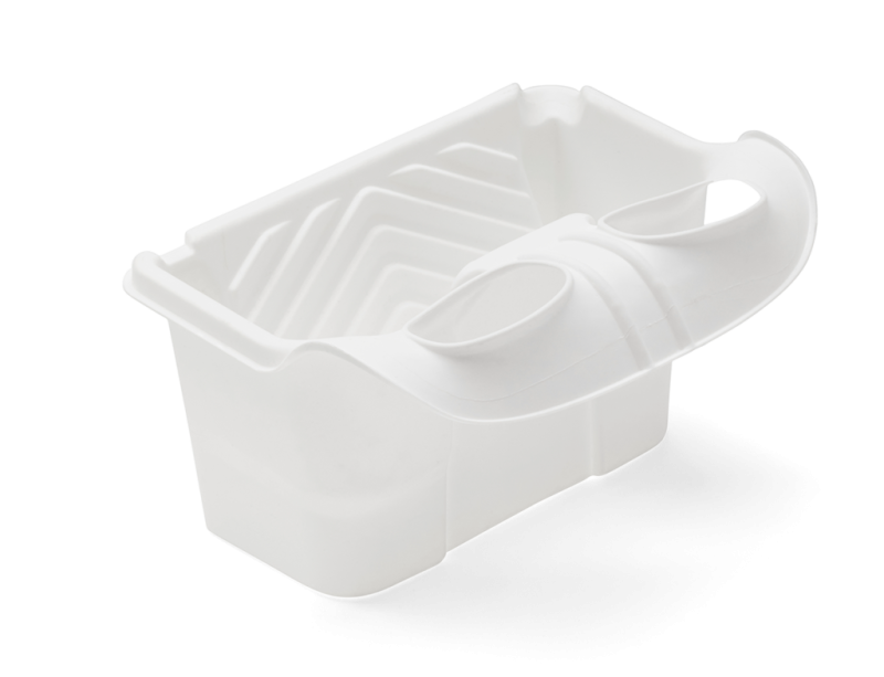 Ръчна ваничка за боя с няколко позиции за захващане, както за десничари, така и за левичари. Ваничката за боя е специално разработена както за четки до 50 мм, така и за мини валяци с ширина 10 мм. Включва поставка за четки, вградена тава за валяци.