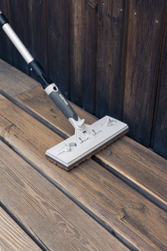 Нашият 2-в-1 инструмент за тераси има както шкурка, така и подложка за нанасяне, които се прикрепят към един и същ инструмент и лесно се превключват между тях. Подложката за нанасяне покрива две дъски едновременно, за да можете да работите по-ефективно, а също така помага да се осигури тънък, равномерен слой без петна. Третирането на терасата ви никога не е било по-лесно! Прикрепете към някой от нашите удължителни пръти за най-добър краен резултат. Шкурката не е включена и трябва да се закупи отделно.