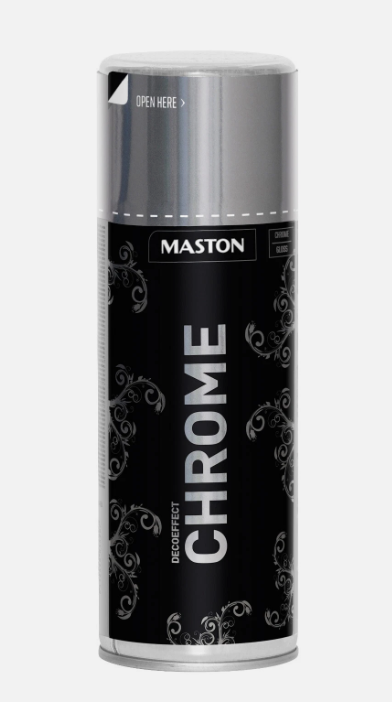 MASTON DECOEFFECT SPRAYPAINT is very glossy decorative paint for indoor applications. It forms a shiny, high gloss surface quite similar to original polished metals. Can be used on wood, metal, glass, artificial surfaces as well as for painting dried plants. Not suitable for cellular plastic. Coverage 1-2m2 . Limited weather proofing. Does not endure strong friction or high heat. Can be re-coated with Maston Deco Effect Lacquer spray for better wear and weather resistance after 12-24h.