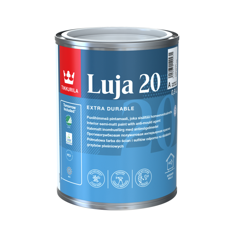 Luja 20 е високоефективна акрилна полуматова боя с инхибитори на мухъл и антимикробни вещества, предназначена да осигури изключително издръжлив филм, подходящ за многократно почистване с препарати от болничен клас.