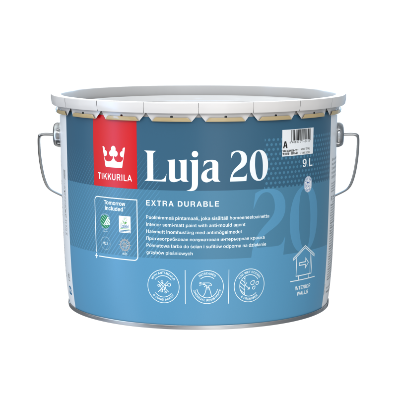 Luja 20 е високоефективна акрилна полуматова боя с инхибитори на мухъл и антимикробни вещества, предназначена да осигури изключително издръжлив филм, подходящ за многократно почистване с препарати от болничен клас.