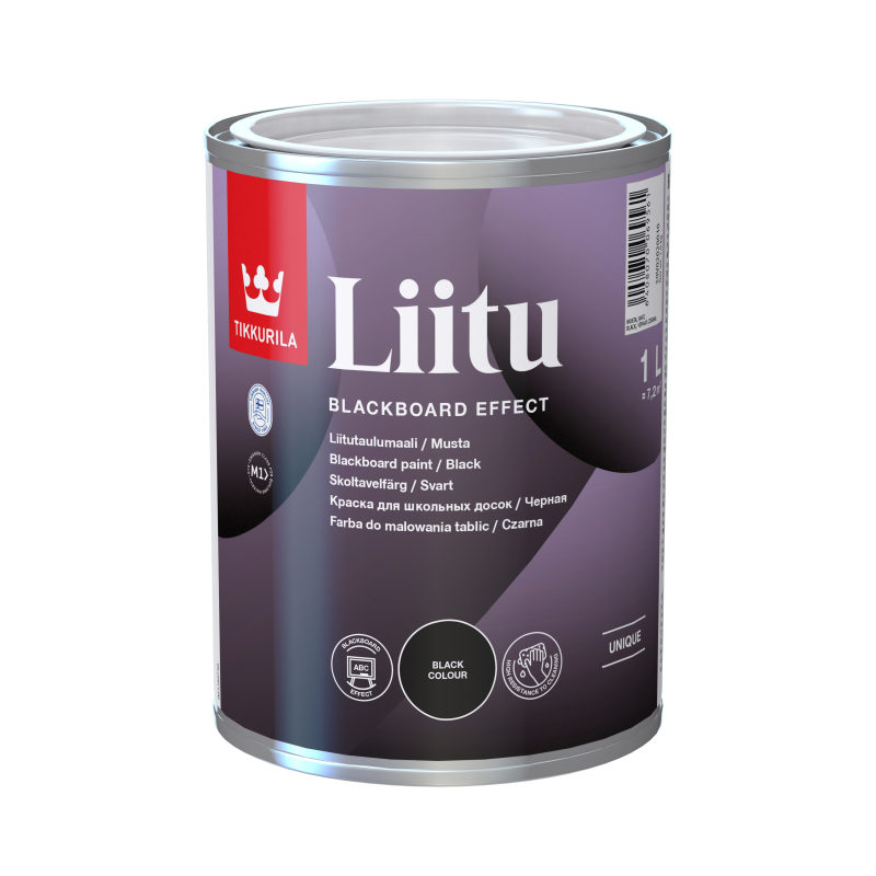 С Liitu Blackboard Paint можете да създавате ефект на черна дъска за писане с тебешир върху стени, врати на шкафове, мебели или малки предмети у дома.