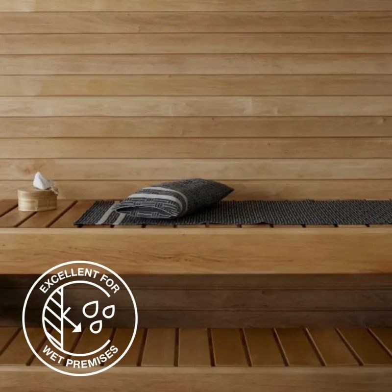 Supi Saunasuoja (Sauna Finish) е покритие за влажни вътрешни пространства, което образува повърхност, отблъскваща замърсявания и вода.
